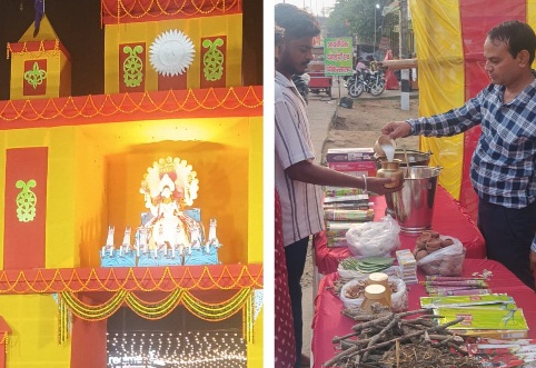 माँ सेवा समिति ट्रस्ट द्वारा निःशुल्क पूजा सामग्री और महाप्रसाद का वितरण