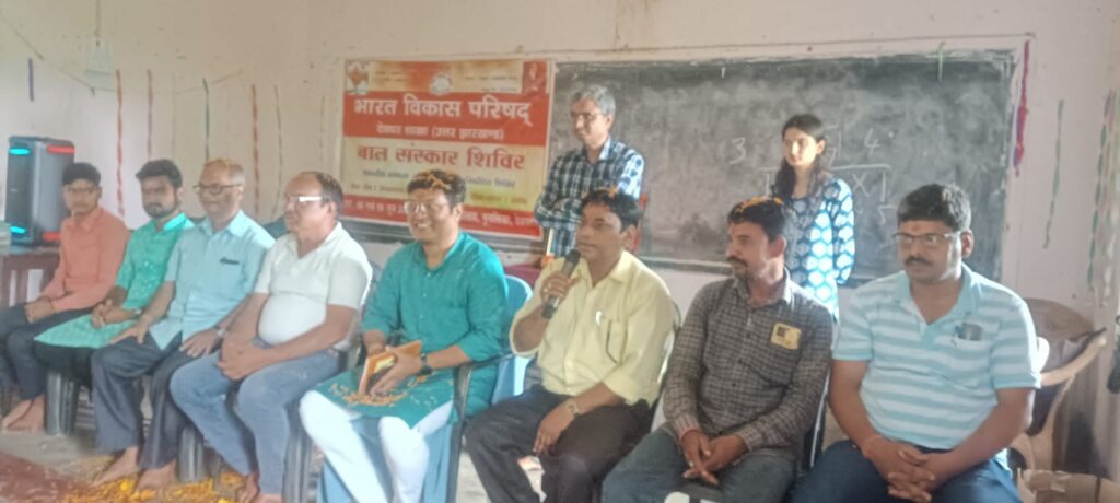 देवघर: भारत विकास परिषद, देवघर शाखा द्वारा ग्रामीण क्षेत्र के उत्क्रमित मध्य विद्यालय, पुनसिया, देवघर में तीन दिवसीय बाल संस्कार शिविर का पूर्ण भारतीय सांस्कृतिक अंदाज में समापन किया गया। इस बाल संस्कार शिविर के माध्यम से बच्चों में भारतीय संस्कृति की अलख जगाया गया। इस बाल संस्कार शिविर को मेधा योग (आर्ट ऑफ लिविंग), संस्कृत व स्वस्ति वाचन, वैदिक गणित और बेसिक मधुर संगीत से पिरोया गया । आज अंतिम दिन गुरु वंदन छात्र अभिनंदन किया गया। विद्यालय के सभी छात्रों ने अपने विद्यालय के शिक्षकों, निशांत जी सहित शिविर के गुरुजनों और विद्यालय समिति के अध्यक्ष चांदमणि द्वारी एवं सदस्य सुधीर पासी की वंदना तिलक लगाकर, फूल-अक्षत बरसा कर तथा आरती उतारकर किया। इससे पहले उनके हाथों में ताम्बुल और श्रीफल (नारियल) देकर सत्कार किया गया। वहीं सभी गुरुजनों ने सभी छात्रों को एक-एक पुस्तक भेंट कर तथा पुष्प वर्षा कर अभिनंदन किया।