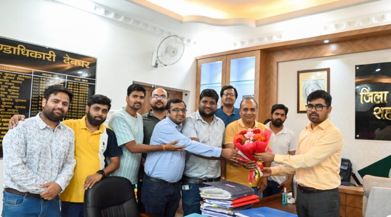 मारवाड़ी युवा मंच देवघर शाखा की कार्यकारिणी टीम के सदस्यों ने देवघर जिला के उपायुक्त नमन प्रियेश लकड़ा से शिष्टाचार मुलाकात की जिसमें मंच द्वारा किये जा रहे विभिन्न सामाजिक कार्यो के बारे में उनको अवगत कराया गया। साथ ही उन्हें पिछले 34 वर्षों से देवघर शाखा द्वारा संचालित श्रावणी सेवा शिविर के बारे में विस्तार से बताया गया। उन्होंने देवघर शाखा द्वारा प्रतिवर्ष चलाये जा रहे श्रावणी सेवा शिविर की काफी सराहना की और साथ ही आस्वस्त भी किया कि मंच को हमेशा की तरह आगे भी सभी सामाजिक कार्यों में जिला प्रसाशन का सहयोग निरंतर प्राप्त होता रहेगा। इसके अलावा उन्होंने सरकार की तरफ से चलाये जा रहे नशा मुक्ति अभियान के बारे में बताते हुए मंच के सदस्यों का ध्यान केंद्रित करते हुए इस अभियान से जुड़ने का सुझाव दिया जिससे कि यह अभियान और भी ज्यादा सुचारू रूप से सफलतापूर्वक चलाया जा सके। उन्होंने सरकार द्वारा समय समय पर चलाये जाने वाले विभिन्न सामाजिक कार्यों में भी जिला प्रसाशन के साथ साथ मंच की सहभागिता के लिये भी जोर डाला।