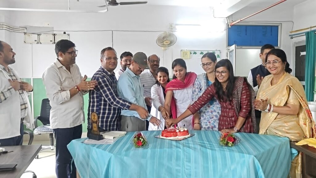 कार्यक्रम में केक काटकर मौके पर सभी चिकित्सक को शाल, मोमेंटो एवं प्रशस्ति पत्र देकर सम्मानित किया गया।