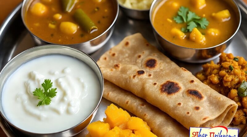 अरवा चावल, दाल, सब्जी, भुजिया, चटनी सहित (150 ग्राम चावल का भात) 80.00 रू0 प्रति प्लेट