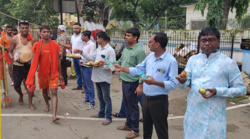 देवघर: पथ निर्माण विभाग, पथ प्रमंडल, देवघर के द्वारा निःशुल्क बोल बम कांवरिया सेवा शिविर में कतारबद्ध कांवरिया श्रद्धालुओं के बीच फल, जल, निंबु-पानी, शरबत, फलाहारी जलेबी का वितरण किया गया। इस दौरान शिविर में पथ निर्माण विभाग के सभी पदाधिकारी, कर्मचारी श्रद्धालुओं की सेवा में लगे हुए हैं।