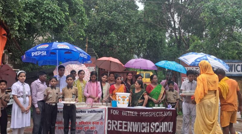 ग्रीनविच विद्यालय के शिक्षक और छात्रों ने की कांवरिया श्रद्धालुओं की सेवा