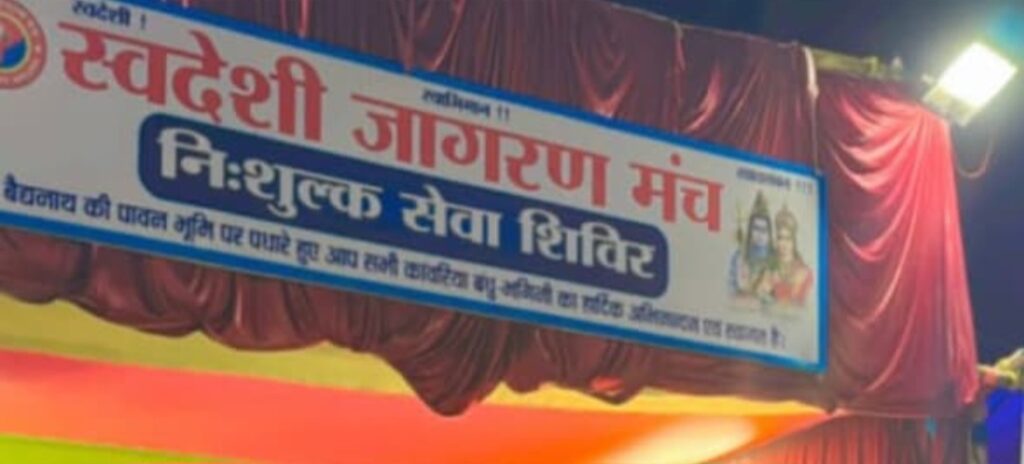देवघर: विश्व प्रसिद्ध श्रावणी मेला के पावन अवसर पर स्थानीय जलसार चिल्ड्रेन पार्क के निकट शिविर लगाकर स्वदेशी जागरण मंच पूरे श्रद्धा के साथ देवतुल्य कॉवरिया भक्तों के सेवा मे निष्ठा से लगी हुई है और श्रद्धालुओं की सेवा कर रही है।