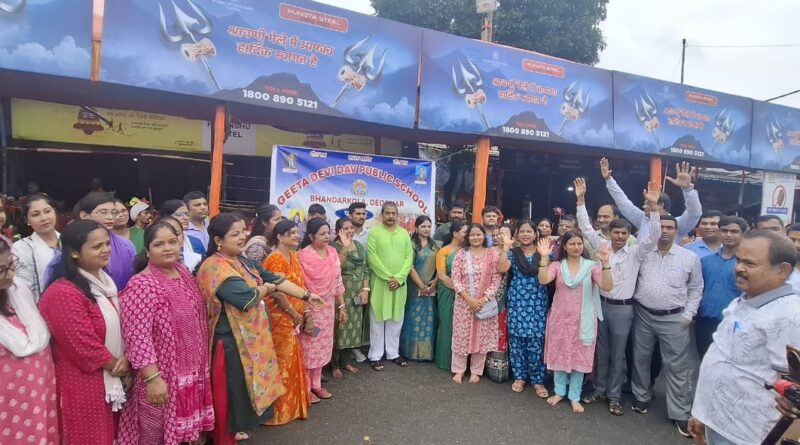 देवघर: स्थानीय खिजुरिया तोरण द्वार के समीप गीता देवी डीएवी पब्लिक स्कूल भंडारकोला के शिक्षक शिक्षिकाओं और शिक्षकेत्तर कर्मचारियों ने हरेक वर्ष की तरह इस वर्ष भी कांवर यात्रा करने वाले कांवरियों की सेवा की। विद्यालय परिवार ने ताजे फल, फ्रूटी , मिनरल वाटर और लस्सी का वितरण किया। दर्द का स्प्रे लगाकर भी थके कांवरियों के दर्द को कम करने का प्रयास किया गया। लगभग 150 की संख्या में लोग सेवा कार्य में लगातार लगे रहे।