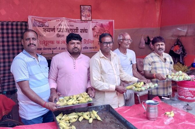 स्वर्ण व्यवसाई संघ के कांवरिया सेवा शिविर में फलाहार का निःशुल्क वितरण