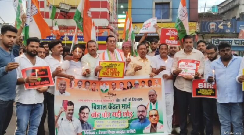 “वोट चोर गद्दी छोड़” नारों के साथ कांग्रेस ने निकाला कैंडल मार्च