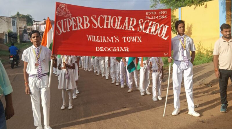 देवघर: आज स्वतंत्रता दिवस के अवसर पर सुपर्ब स्कॉलर स्कूल में प्रातः 5:00 बजे एक भव्य प्रभात फेरी निकाली गई। विद्यालय से प्रारंभ हुई रैली में विद्यार्थियों और शिक्षकों ने तिरंगा लेकर “भारत माता की जय” व “वंदे मातरम्” के नारे लगाए। देशभक्ति गीत और संदेश-पटिकाओं ने मार्ग में उपस्थित लोगों का मन मोह लिया।