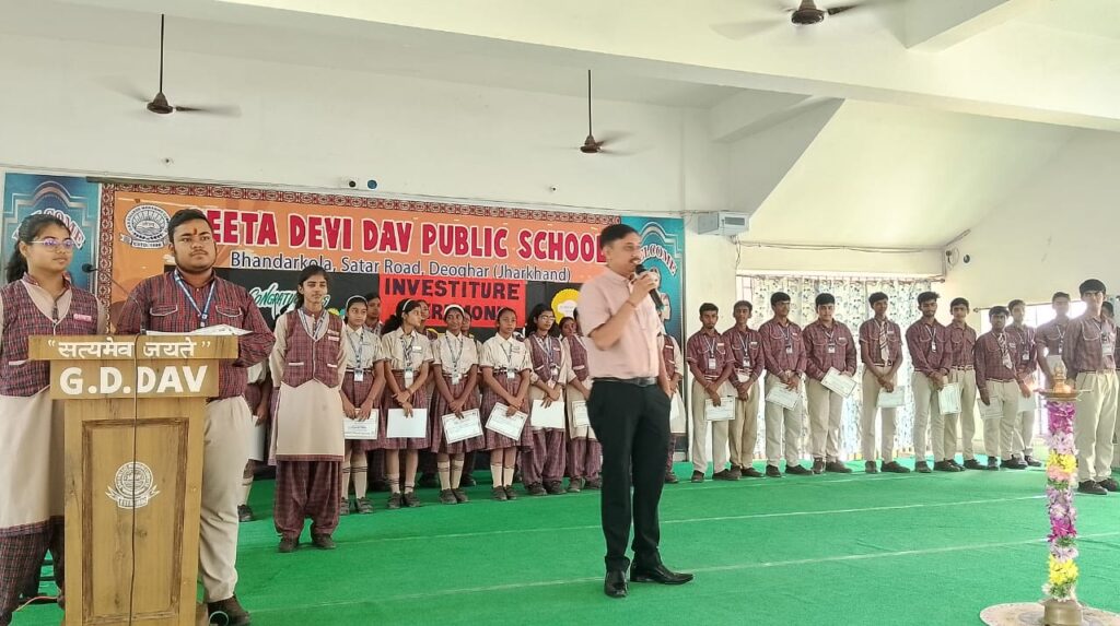 देवघर: सातर रोड स्थित गीता देवी डीएवी पब्लिक स्कूल भंडारकोला में बैज समारोह का आयोजन किया गया। इस अवसर पर विद्यालय के छात्र-छात्राओं को विभिन्न जिम्मेदारियों के लिए हेड बॉय, हेड गर्ल सहित अन्य प्रतिनिधियों के रूप में बैज प्रदान किए गए।