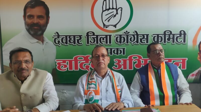 देवघर: आज देवघर कांग्रेस जिलाध्यक्ष मुकुंद दास ने एक प्रेस वार्ता का आयोजन किया। इस दौरान जिले में कांग्रेस का चल रहे ‘वोट चोर गद्दी छोड़’ हस्ताक्षर अभियान तथा ग्राम पंचायत कांग्रेस कमिटी के गठन को लेकर देवघर जिलाध्यक्ष मुकुंद दास ने प्रेस को संबोधित करते हुए कहा कि मुझे नई जिम्मेवारी पिछले हफ्ते ही मिली है।