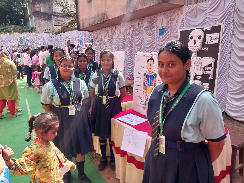 भाषाई प्रदर्शनी में हिंदी और अंग्रेजी दोनों विषयों के व्याकरणिक नियमों को सरल और रोचक ढंग से प्रस्तुत किया गया, जिससे व्याकरण को समझना और याद रखना बच्चों के लिए सहज बन गया। इसके साथ ही मेथोडोलॉजिकल प्रस्तुति के माध्यम से ‘अशोक वाटिका’ का दृश्य, रवींद्रनाथ टैगोर की जीवनी, इतिहास में बिरसा मुंडा का योगदान, तथा कंप्यूटर में एआई (Artificial Intelligence) का चित्रण अत्यंत प्रभावशाली रहा।