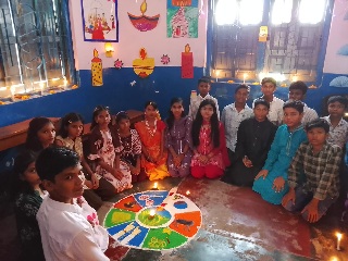 रंगोली प्रतियोगिता में संस्कृति समूह प्रथम, संस्कार को द्वितीय तथा विरासत को तृतीय स्थान प्राप्त हुआ। पोस्टर निर्माण में भी पटाखों को न दीया को हाँ का संदेश देकर पर्यावरण की स्वक्षता कायम रखने का संकल्प को दोहराया। दीवाली कार्ड निर्माण में भी बच्चों ने आकर्षक क्रियाशीलता को प्रर्दशित किया। दीया बनाओ व सजाओ में भी बच्चों की कल्पनाशीलता बरबस दाँतो तले उंगली दबाने को विवश करती हैं।