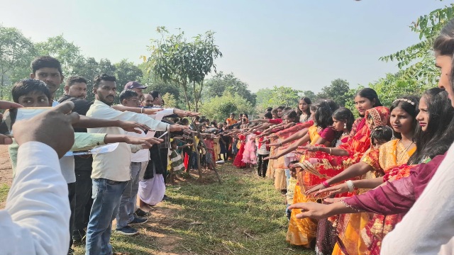 देवघर: झारखंड राज्य के स्थापना के रजत जयंती वर्ष समारोह के अवसर पर दिनांक 13.11.2025 को देवघर जिला अंतर्गत मोहनपुर प्रखंड के बारा पंचायत के बिश्वानि ग्राम में झारखंड राज्य जलछाजन मिशन योजना अंतर्गत जल एवं मिटी को संरक्षण एवं जागरूक करने हेतु जल छाजन रैली सह कलश यात्रा, गौरव गाथा, जलछाजन गीत, रंगोली प्रतियोगिता, शपथ ग्रहण एवं प्रत्येक जलाशय पर पौधारोपण किया गया ।