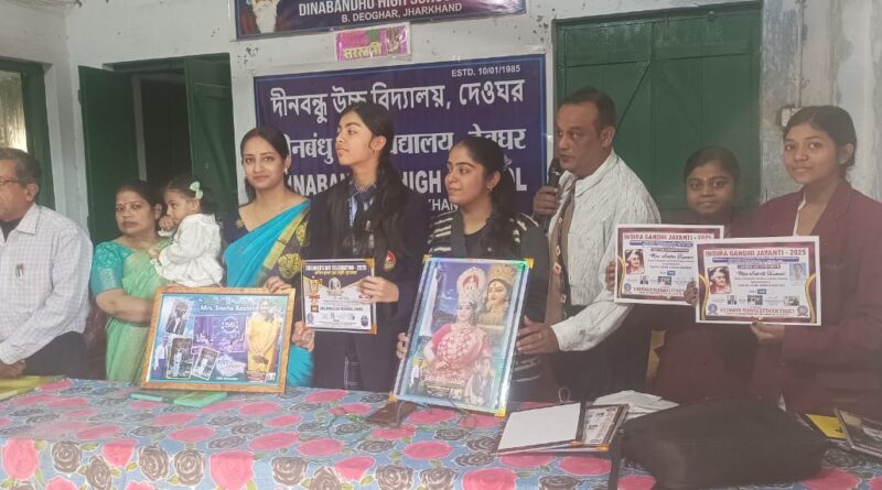 देवघर: आज सम्पूर्ण भारत में हमारे प्रथम महिला प्रधानमंत्री श्रीमती इंदिरा गाँधी एवं स्वतंत्रता सेनानी रानी लक्ष्मीबाई की जयंती मनाई जा रही है। इन्दिरा का जन्म 19 नवम्बर 1917 को राजनीतिक रूप से प्रभावशाली नेहरू परिवार में हुआ था। लक्ष्मीबाई का जन्म वाराणसी जिले में 19 नवम्बर 1828 को एक मराठी ब्राह्मण परिवार में हुआ था।