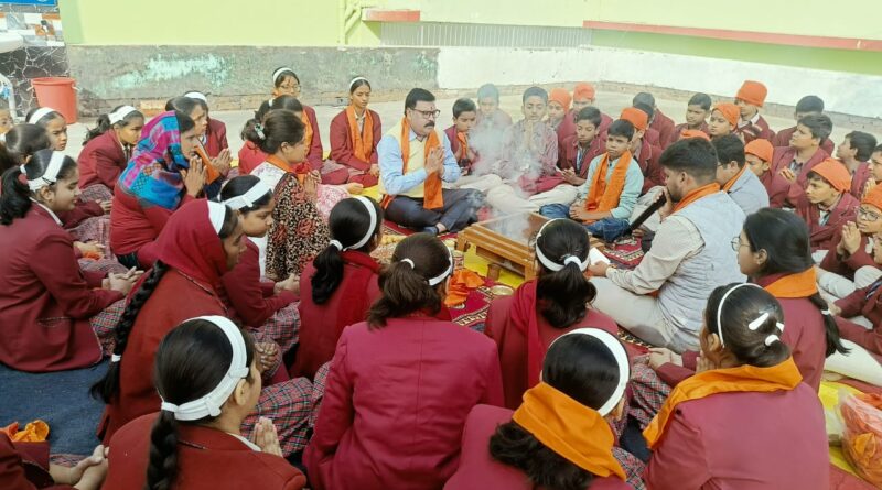 देवघर: आज दिनांक 25.11.2025 को स्थानीय गीता देवी डीएवी पब्लिक स्कूल कास्टर टाउन,देवघर में विद्यालय की पूर्व चेयरपर्सन स्वर्गीय गीता देवी तुलस्यान की पुण्यतिथि पर श्रद्धांजलि सभा का आयोजन किया गया।विद्यालय के प्राचार्य दिलीप कुमार सिंह, शिक्षकगण तथा विद्यार्थियों के द्वारा स्वर्गीय गीता देवी तुलस्यान की तस्वीर पर माल्यार्पण कर उन्हें श्रद्धांजलि दी गई। तत्पश्चात् विद्यालय के प्रांगण में सामूहिक रूप से वैदिक विधि-विधान से हवन यज्ञ करवाया गया।