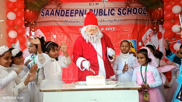 देवघर: झौसागढी, दुःखी साह रोड स्थित संदीपनी पब्लिक स्कूल में प्री-प्राइमरी तथा कक्षा 1 एवं 2 के नन्हे-मुन्ने बच्चों के लिए क्रिसमस उत्सव अत्यंत हर्षोल्लास, उमंग और रंगारंग प्रस्तुतियों के साथ मनाया गया।