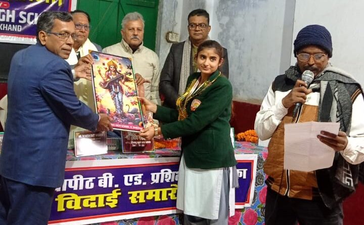 देवघर: आज दिनांक 24.12.25 को दीनबंधु उच्च विद्यालय के रबीन्द्र सभागार में हिन्दी विद्यापीठ बी एड महाविद्यालय के प्रशिक्षणार्थियों का विदाई समारोह आयोजित किया गया। सर्व प्रथम नवम और दशम वर्ग के साक्षी सिंह, नीतू कुमारी, आस्था, मुस्कान, शिवानी और दिव्या कुमारी ने स्वागत गीत गाकर अतिथियों को मंत्र मुग्ध कर दिया। तत्पश्चात सामान्य उपहार देकर आज के सभा का अध्यक्षता करते हुए विद्यालय के सचिव संदीप कुमार गोस्वामी ने सभी अतिथियों को सम्मानित किया। प्रधानाध्यापक काजल कान्ति सिकदार ने स्वागत भाषण दिया।