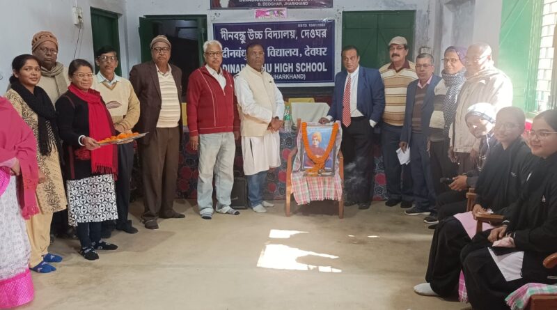 देवघर: दीनबंधु उच्च विद्यालय में स्वामी विवेकानंद की जयंती धूमधाम से मनाई गई। कार्यक्रम के प्रारम्भ में मुख्य अतिथि देवघर सहोदया स्कूल कॉम्प्लेक्स के अध्यक्ष रामसेवक सिंह गुंजन, विशिष्ट अतिथि डॉ. प्रदीप कुमार सिंह देव, रवि कुमार केशरी, गणेश प्रसाद उमर, जालेश्वर ठाकुर शौक़ीन, विद्यालय के प्रधानाध्यापक काजल कांति सिकदार एवं पूर्व शिक्षक विधान चंद्र मंडल ने संयुक्त रूप से विवेकानंद की तस्वीर पर माल्यार्पण एवं पुष्प अर्पित किया।