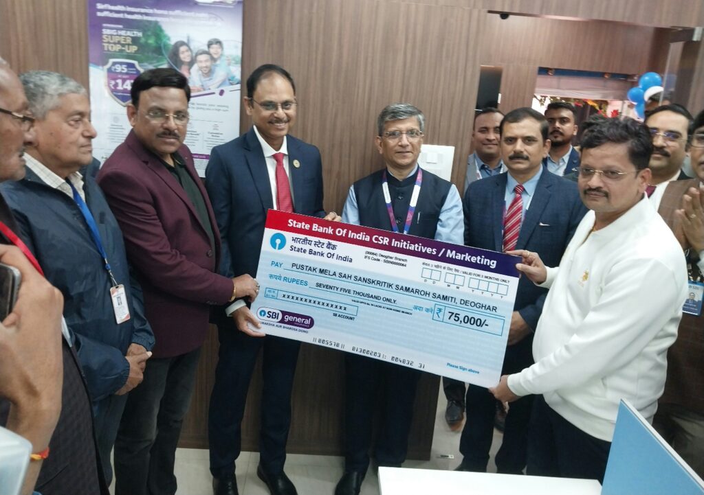 कार्यक्रम में भारतीय स्टेट बैंक, पटना मंडल के मुख्य महाप्रबंधक अनुराग जोशी, झारखंड नेटवर्क के महाप्रबंधक विवेक चंद्र जायसवाल, देवघर अंचल के उप महाप्रबंधक एस. सत्यनारायण राव तथा देवघर क्षेत्रीय प्रबंधक प्रशांत कुमार झा की विशेष उपस्थिति रही। सभी अतिथियों ने संयुक्त रूप से फीता काटकर कार्यालय का उद्घाटन किया और नई शाखा के सफल संचालन के लिए शुभकामनाएं दीं। उद्घाटन के उपरांत एसबीआई जनरल इंश्योरेंस द्वारा कॉर्पोरेट सामाजिक दायित्व (सीएसआर) के अंतर्गत समाज के विभिन्न वर्गों के लिए सहयोगात्मक पहल की गई। इस क्रम में झारखंड पेंशनर्स कल्याण समाज, देवघर को आवश्यक उपयोगी सामग्री प्रदान की गई, जिससे वरिष्ठ नागरिकों को लाभ मिल सके। इसके साथ ही श्री शारदा बालिका मध्य विद्यालय की छात्राओं के शैक्षणिक विकास को ध्यान में रखते हुए विद्यालय को अध्ययन सामग्री उपलब्ध कराई गई। वहीं पुस्तक मेला सह सांस्कृतिक समिति, देवघर को सामाजिक एवं सांस्कृतिक गतिविधियों को प्रोत्साहित करने के उद्देश्य से आर्थिक सहयोग स्वरूप चेक प्रदान किया गया।