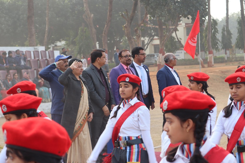 कार्यक्रम को आगे बढ़ाते हुए पैरामेडिकल के छात्र इंजमामुल हक ने संदेशे आते हैं गीत गाए ।पैरामेडिकल के एडमिनिस्ट्रेटर ने सभी को गणतंत्र दिवस की बधाई देने के साथ शहीदों को याद किया तथा सेना के काम की सराहना की बच्चों को उत्कृष्ट संदेश दिए। तत्पश्चात कक्षा चतुर्थ से षष्ठ के छात्र-छात्राओं ने देश भक्ति गीत पर नृत्य प्रस्तुत किया। कार्यक्रम के मुख्य अतिथि डॉ मधुकर ने काव्यात्मक शब्दों का प्रयोग करते हुए ओजपूर्ण भाषण दिए। उन्होंने कहा एक प्रसंग है कि हनुमान जी भूल जाते हैं कि उनमें कितना बाल है उन्हें याद दिलाना पड़ता है। विवेकानंद जी ने युवाओं को जगाने की बात कही है इसी आधार पर उन्होंने अपनी स्व रचित कविता ‘सुनो प्रभाती बिगुल बज रहा’ का पाठ किया।