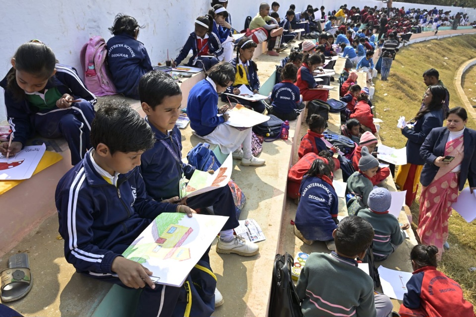 देवघर: शहर के मध्य अवस्थित के के एन स्टेडियम में खुले आसमान के नीचे शहर परिक्रमा मेगा पेंटिंग कंपिटिशन (चित्रांकन प्रतियोगिता), सीजन- 11 का आयोजन किया गया जिसमे विभिन्न विद्यालयों के हजारों छात्र छात्राओं ने बढ़ चढ़ कर हिस्सा लेते हुए ड्रॉइंग शीट पर निर्धारित विषय के रंग भरे।