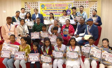 देवघर: स्थानीय विवेकानंद शैक्षणिक, सांस्कृतिक एवं क्रीड़ा संस्थान तथा आर. सी. भौमिक मेमोरियल ट्रस्ट के युग्म बैनर तले एक होटल के सभागार में पिछले दिन आयोजित पोट्रेट पेंटिंग, चित्रांकन, हस्तलेखन एवं निबंध लेखन प्रतियोगिता के एक सौ विजेता विद्यार्थियों के नाम की घोषणा की गई एवं स्थानीय विजेताओं को मुख्य अतिथि फूड क्राफ्ट इंस्टिट्यूट की व्याख्याता डॉ. श्वेता लिंगवाल, भौमिक ट्रस्ट के संस्थापक न्यासी राजर्षि भौमिक, वेक्सो इंडिया के अध्यक्ष डॉ. प्रदीप कुमार सिंह देव, संरक्षक प्रो. रामनंदन सिंह, देवघर चैम्बर ऑफ कॉमर्स एंड इंडस्ट्रीज के अध्यक्ष रवि कुमार केशरी, गायिका रोशनी झा, साहित्यकार सुमन शिवकुमार एवं डॉ. ब्रह्मदेव, भारती की सदस्या अनुपमा गुप्ता, शिक्षा विदुषी कंचन मूर्ति व अन्य अतिथियों के हाथों पुरस्कृत किया गया।