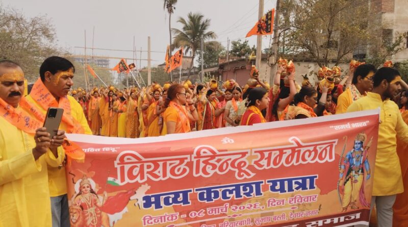 देवघर: आज दिनांक 08.03.26 को बरियार बाँधी में विराट हिन्दू सम्मलेन का आयोजन किया जा रहा है। इस दौरान 150 महिलाओं द्वारा एक ‘कलश यात्रा’ का भी आयोजन किया गया। यह यात्रा बरियर बाँधी से बंपास टाउन, बाजला चौक, सुभाष चौक, संत फ्रांसिस स्कूल के पास से वापस बरियर बाँधी पहुंची।