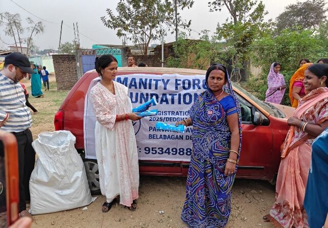 देवघर: अंतर्राष्ट्रीय महिला दिवस के अवसर पर Humanity Force Foundation, Deoghar द्वारा ग्रामीण क्षेत्रों में महिलाओं के लिए विशेष जागरूकता कार्यक्रम आयोजित किया गया। कार्यक्रम के दौरान गांव की महिलाओं और किशोरियों को मासिक धर्म (पीरियड्स) से जुड़ी महत्वपूर्ण जानकारी दी गई तथा स्वच्छता और स्वास्थ्य के प्रति जागरूक किया गया। इस दौरान संस्था की टीम ने महिलाओं के बीच सेनेटरी पैड का वितरण भी किया और उनके सही उपयोग तथा समय-समय पर बदलने के महत्व के बारे में विस्तार से बताया।